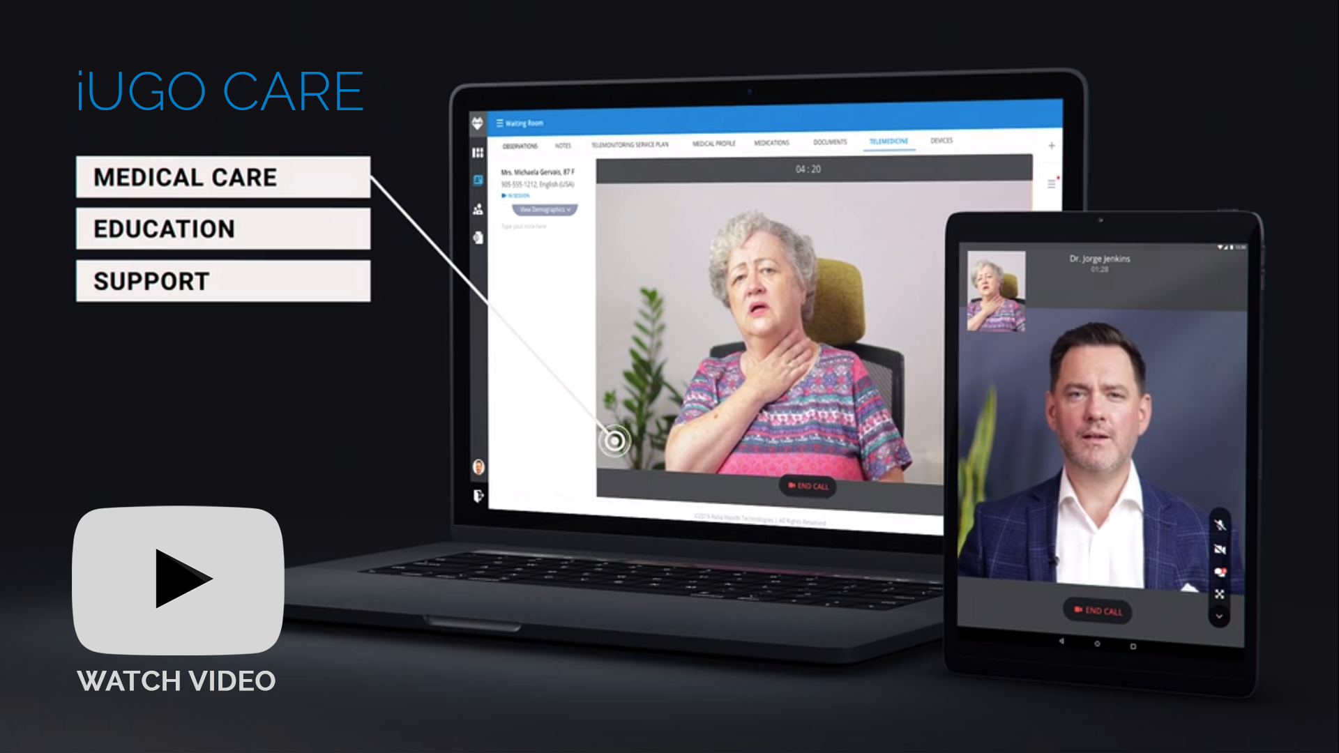 iUGO Care supports secure, HIPAA-compliant virtual visits between patients and their clinical care team providers. The Telemedicine platform gives patients and providers the flexibility to meet remotely using video conferencing, secure text messaging, or a phone call.